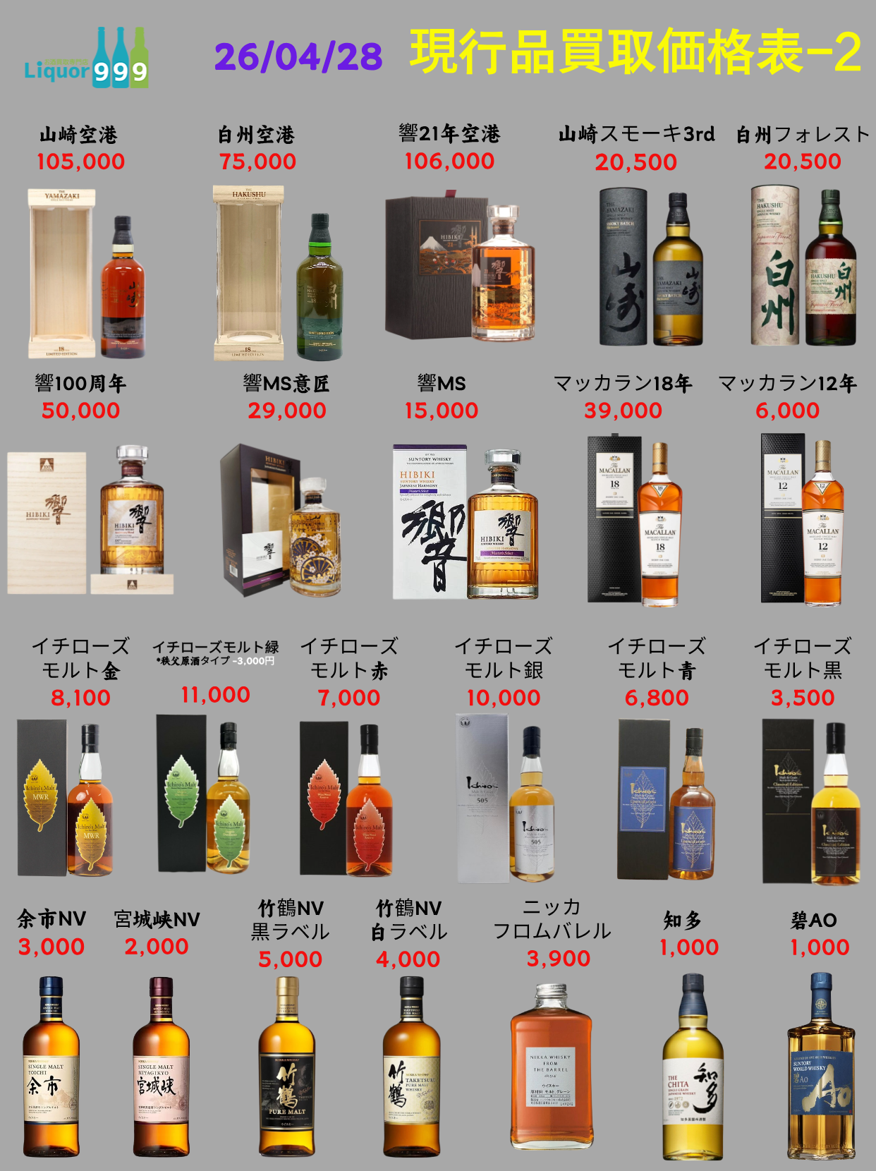 当社がお客さまより実際に買い取ったお酒の一部買取実績をご紹介いたします。